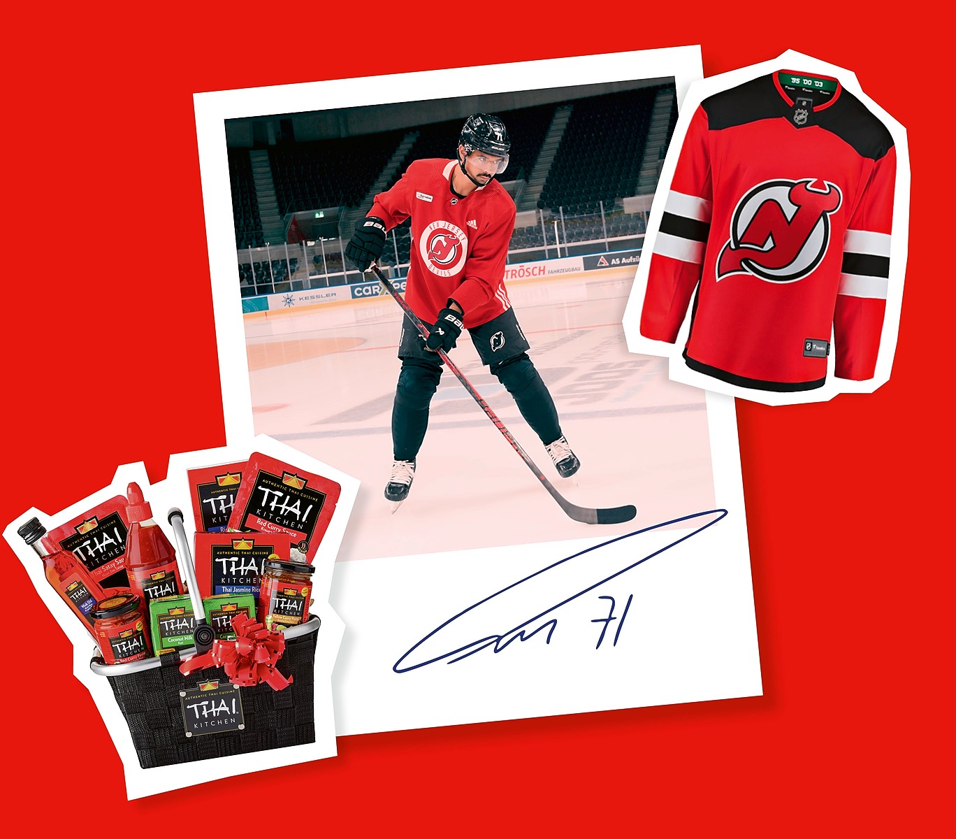 Les autres prix: Un maillot de hockey sur glace dédicacé par Jonas Siegenthaler ou un lot de produits Thai Kitchen d'une valeur de CHF 250.